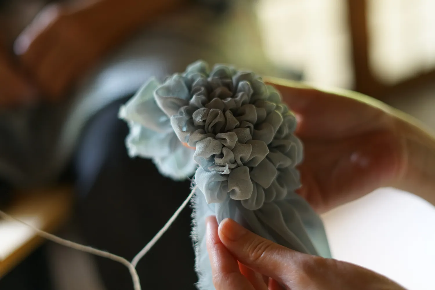 すべての絞りは一つ一つ手作業で行われます。その揺らぎは機械では決して生み出せない、人の手ならではのもの。